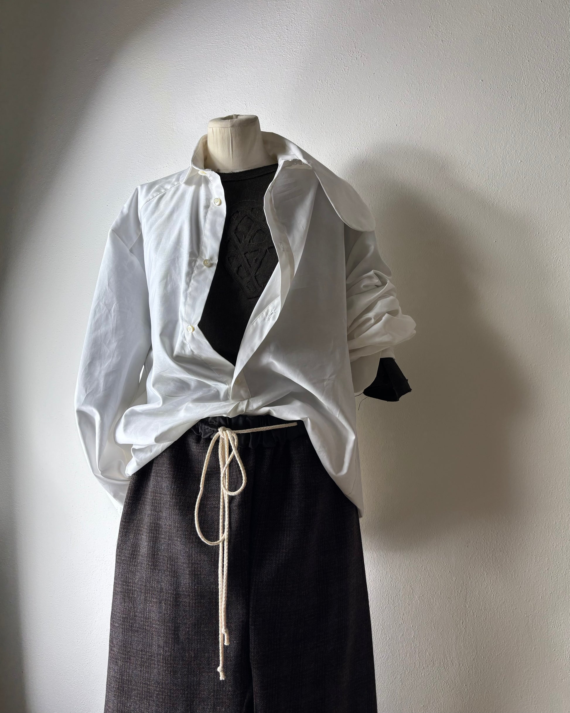 La vita è regolata da un elastico ed una corda che funge da coulisse, dettaglio essenziale che risalta sul raso di cotone utilizzato per cinta e tasche.